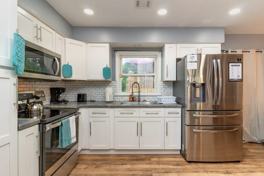 Enjoy a wonderful stay in this charming tri-level home featuring 4 bedrooms, two shared sleeping areas, and 3 full bathrooms, accommodating up to 18 guests. Relax on the cozy patio or let the kids enjoy the treehouse. This spacious home includes a fully equipped kitchen and free Wi-Fi, ensuring a comfortable stay.
