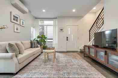 This home features a modern, fully equipped kitchen with high-end appliances, cookware, spices, and a Keurig coffee machine. Enjoy premium comfort with high-quality mattresses, luxury linens, and blackout curtains. For entertainment, there is a smart TV for streaming your favorite shows, as well as a washer/dryer and big windows for natural light.