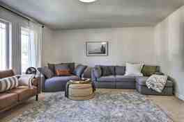 The retreat features a fully equipped kitchen with stainless steel appliances, a spacious island, and all the essentials for effortless meal prep. The beautifully landscaped backyard offers a covered patio, ample seating, and a lush lawn for games or quiet relaxation. The 3-bedroom, 2.5-bathroom home is thoughtfully designed for comfort and flexibility, with a luxurious primary suite featuring an ensuite bathroom with dual shower heads for a spa-like experience. Additional bedrooms offer cozy spaces for guests, plus a queen sofa bed in the office and a twin sofa bed in the basement bedroom to accommodate extra visitors.