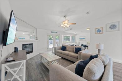 Escape to comfort near the coast in this charming dog-friendly home close to Pensacola beaches. Step inside to find a bright and welcoming space, perfect for unwinding in the cozy living area with a large TV, a fireplace, and a full kitchen featuring modern appliances, a breakfast bar, and a formal dining area. The private enclosed backyard is ideal for yard games or soaking in the coastal air.