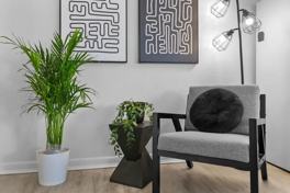 Upon entering, you'll be greeted by an open-concept living area adorned with clean lines, minimalist décor, and an abundance of natural light. The living room features comfortable seating where you can relax and unwind after a day of exploring the city. A large flat-screen TV awaits you for catching up on your favorite shows or enjoying a movie night. The fully equipped kitchen provides everything you need to channel your inner chef and prepare delicious meals. Start your morning with a cup of coffee using the complimentary Keurig machine and enjoy your meals at the comfortable dining table surrounded by hanging plants and artistic wall hangings. The two well-appointed bedrooms offer a cozy and tranquil haven, each featuring comfortable queen-sized beds adorned with soft linens and modern-inspired accents.