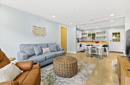 Step inside your very own slice of paradise and be greeted with a bright, welcoming space designed and styled with your comfort in mind. The spacious lounge offers a comfortable place to gather after a day at the beach, with over 100 channels to choose from on the big screen. The sofa can be converted into a queen bed for additional sleeping space. The powder white kitchen is fully equipped for cooking breakfast, lunch, and dinner. Enjoy meals at the breakfast bar or explore the best restaurants in town right on your doorstep. The master bedroom features a luxuriously large king bed, an additional TV, and a dresser. The second bedroom includes two twin beds and a third TV. The central bathroom offers a stylish walk-in shower and a vanity stocked with essentials and plenty of soft, fluffy towels. Step out onto the covered back patio to enjoy the cool ocean breeze with a lovely sitting area, perfect for a morning coffee from your own Keurig coffee machine. The yard and pool are shared with neighboring suites.