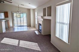 Welcome to this beautiful 3-bedrooms, 2-baths home nestled in the highly desirable Viewpoint community of Prescott Valley! From the moment you step inside, you'll be greeted by an inviting open layout designed for both comfort and style. The spacious living room features plush carpeting, a cozy fireplace, and vaulted ceilings that create an airy, welcoming atmosphere--perfect for relaxing evenings or entertaining guests. The kitchen is the heart of this home, fully equipped with modern white appliances, a pantry, ample counter space, and abundant cabinetry for all your storage needs. A convenient breakfast bar and adjacent dining area make it ideal for family meals or casual mornings with a cup of coffee. Through the sliding glass doors, you'll find a private backyard complete with a covered patio--perfect for enjoying Prescott Valley's beautiful weather year-round. The primary suite offers a peaceful retreat with a walk-in closet and plenty of natural light. Additional interior features include ceiling fans throughout, tile flooring in high-traffic areas, and a dedicated laundry room with washer and dryer hookups for added convenience. The home also includes a spacious 2-car garage for parking or extra storage. Located in the tranquil and well-maintained Viewpoint community, this home offers the perfect balance of peace and accessibility. You'll be just minutes away from parks, scenic hiking trails, shopping centers, local restaurants, and schools--making it an ideal place to make your home. We welcome small furry friends!