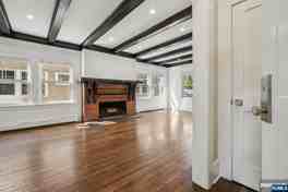 Charming and cozy first floor unit located on one of the most desirable Montclair streets. Completely renovated, features open floor plan with beamed ceilings, Fireplace, large Living room, Slider doors leading to front private porch, Bright and spacious with lots of windows. Dining area off Eat-in Kitchen, Stainless steel appliances, pantry with lots of storage, side island. Two large bedrooms with California closets. Hardwood floors, Central Air, WATER/SEWER included in RENT. Lower level consists of the Recreation Rm/Office/ Gym, Laundry Room and storage. Parking in rear, access to yard, storage shed. Close to Mid-town direct NYC train, bus, shops restaurants. Completely painted and move in ready. The best location in town.