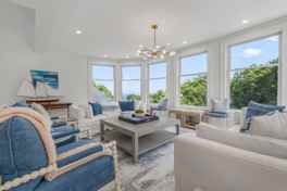 Experience sophisticated coastal living in this stunning estate where comfort meets elegance at every turn. The spacious living areas feature plush seating and panoramic views, blending relaxation with style. A library, sunroom, and parlor provide inviting retreats for quiet moments or casual gatherings, while the media room and hidden speakeasy add a touch of entertainment and exclusivity. The gourmet kitchen and expansive dining space create the perfect setting for memorable meals with loved ones. Keep active and inspired in the architecturally unique floating gym, complete with modern fitness equipment and access to a roof deck with breathtaking views. Outdoors, a wraparound porch, multiple decks, and a screened porch invite you to relax and soak in stunning ocean vistas. Enjoy games on the tennis or pickleball court, unwind by the hillside fire pit, or refresh under double outdoor showers. Every space is crafted for an unforgettable vacation experience that blends luxury, comfort, and natural beauty. Includes high-end couches, comfortable accent chairs, brand new windows offering panoramic views of the ocean, bay and forest, coffee tables, Sonos speakers, a large sectional couch, two comfy swivel chairs, a 70" 4K smart TV with Netflix and Sonos soundbar, high-end leather couch and chairs, custom-built bookcase, books, board games, antique cameras/artifacts to explore, a wet bar (beverage cooler, ice machine, countertop dishwasher, record player), and a Wolf gas stove and double oven.