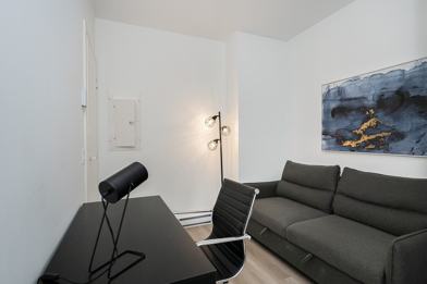 Located in the bustling downtown core of Montreal, adjacent to the Bell Centre, this property epitomizes luxury and practicality, setting a new benchmark for urban living, especially tailored for young professionals, newcomers, and students. Situated mere steps away, you will enjoy easy access to the attractions of the Golden Square Mile and the historic charm of Old Montreal. This development fosters an environment ideal for both academic pursuits and professional development. This new condo is very well located near the Bell Centre, just steps away from the Golden Square Mile’s attractions. It features 1 bedroom with a double bed and a sofa bed and 1 bathroom.