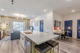 This new condo offers modern comfort and features a comfortable living room, an equipped kitchen with all essentials, and a washer/dryer in the unit. A coffee machine with coffee, cream, and sugar are provided.