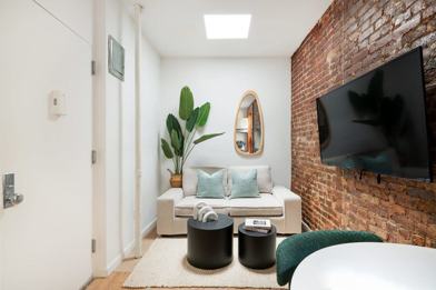 This two-bedroom unit situated in the Lower East Side is fully furnished with everything you could need during your stay. Equipped with high-end appliances in a newly renovated kitchen, plush sofa, and large 50" HD TV with Fire Stick, as well as an in-unit washer and dryer and dishwasher for your convenience. Whether you are here for business or pleasure, this thoughtfully designed apartment is equipped with everything you will need! New York City's heating season is until the end of May. Beginning around mid-April, window air conditioning will be installed in the apartment. Early installation requests are welcome.