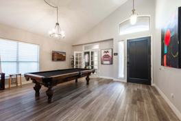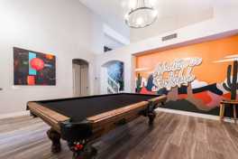 This home offers modern decor, an open-concept living area, and a fully equipped kitchen. Enjoy the private pool, hot tub, and a well-equipped gym. The outdoor space is a true highlight, featuring a private pool surrounded by lounge chairs, a shaded patio area with comfortable seating, and a BBQ grill for outdoor dining. Modern amenities include high-speed Wi-Fi, smart TVs, and central air conditioning.