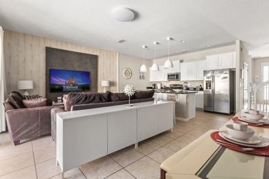 Located in Solterra Resort, this home is a short distance from Orlando's world-famous attractions, exceptional shopping centers, and top-notch golf courses. Enjoy easy access to I-4 and proximity to clear lakes, making it an ideal location for both relaxation and adventure. The resort's clubhouse, just an eight-minute walk away, offers a variety of amenities including a fitness center, a large pool with a waterfall and slide, a lazy river, and more.