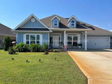 Located in the Gulf Breeze community, you're going to love this 5 bedroom home and all that comes with it. Charming curb appeal including a cute, front porch are just the beginning. Inside, discover spacious rooms, stylish architectural accents, and a modern vibe throughout. The home's open floor plan allows flexibility in arranging furniture and provides a great spot for entertaining guests. Additional flex space is offered at the front of the home with a formal dining area and bonus room. Move seamlessly through the home either through the main foyer hallway or through the service hallway that gives access to the dining room and kitchen as it passes by the laundry, garage, and pantry. A spacious kitchen provides plenty of space for cooking and includes an assortment of upgrades including granite counters and stainless appliances. And on nights when you have a crowd for dinner, you'll appreciate the large breakfast bar and casual dining areas so that everyone has a place to eat. The nearby living room is accented with a beautiful, trey ceiling that really pops. Enter the owner's suite and discover a great space to relax after a long day. Plus the spacious, adjoining bathroom includes dual vanities set in a granite counter, a garden tub for soaking, and a separate walk-in shower. The guest rooms, located in their own wings of the home each provide plenty of space and each include a nearby bathroom. A well manicured backyard includes an extended, covered patio area that's a great place for weekend gatherings. And don't forget to spend sometime enjoying the community pool that affords you all the joys of pool life without the upkeep. As one last perk, this home includes a power credit to ensure your utility expenses don't go crazy. Don't let this home pass you up.