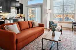 This modern, urban-designed, fully furnished apartment features a full kitchen with a Keurig, complimentary coffee and tea, a refrigerator, freezer, stove, oven, and microwave. You'll also find central air conditioning and heating, linens, towels, bed pillows, blankets, hangers, a hair dryer, an iron and ironing board, and an in-unit washer and dryer. For entertainment, there is a ROKU 4KHDTV in the living room and bedroom.