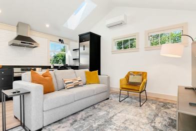 Welcome to your chic and cozy home-away-from-home in the heart of Queen Anne! This newly built 1-bedroom, 1-bathroom Detached Accessory Dwelling Unit (DADU) offers the perfect blend of modern amenities and comfort, making it an ideal choice for couples, solo travelers, or business visitors. This charming home is a sanctuary of modern elegance and comfort, providing premium bedding, luxury towels, exquisite bathroom amenities, and exceptional cleanliness. Enjoy modern conveniences like fast Wi-Fi and Roku streaming devices. The serene bedroom features a queen-sized bed with plush bedding, while the modern bathroom is equipped with all essentials, including a shower, luxurious towels, and complimentary toiletries. The open-concept living area is designed for comfort and style, with a cozy sofa, flat-screen TV, and high-speed Wi-Fi for your entertainment and work needs. The fully equipped kitchen comes with all necessary appliances and utensils, allowing you to prepare your favorite meals with ease. Enjoy the privacy of your own space with alley access behind the main house, providing a quiet and secluded retreat.