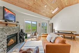 Step into this fairy tale cabin where immaculate open space meets modern comfort. The cozy open-plan living area is designed with numerous modern amenities, including a fully equipped kitchen and an inviting dining area that opens onto an attractive living room. Upstairs, the living room features comfy couches, a cozy fireplace, and access to the outdoor deck. Downstairs, enjoy a gaming area with shuffleboard and air hockey. The kitchen is a chef's dream, complete with a microwave, stove, oven, refrigerator/freezer, coffee maker, dishwasher, and all necessary cookware and utensils. The large dining area is perfect for home-cooked meals, with seating for up to 11 guests.