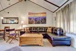 Welcome to your mountain retreat! This cozy chalet-style home offers a peaceful and quiet setting year-round, featuring a comfortable living room with a fireplace and TV, a fully equipped kitchen with a dining area for four, and two comfortable bedrooms, including a master with a private deck. Enjoy outdoor decks on both levels for relaxation and take in the serene mountain views.
