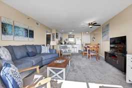Welcome to Seascape, a beachfront property offering breathtaking sunset views and a perfect beach vacation experience. This two-bedroom apartment features a queen bedroom with a full master bath and a second bedroom with a twin-over-twin bunk bed and a full-size bed. Feel at home with a fully equipped kitchen and a dedicated desk space for remote work, all enhanced by free high-speed Wi-Fi. Enjoy the stunning views of dolphins and boats from the balcony.