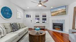 This modern townhouse offers high-end finishes, open living spaces, and stylish coastal comfort. The designer kitchen features quartz counters, custom cabinetry, stainless steel appliances, and an island with bar seating. A washer and dryer are available in-unit for guest use. Central air conditioning/heat and Wi-Fi are provided throughout.
