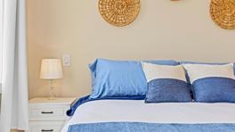 This stylish condo offers modern amenities like air conditioning, a fully equipped kitchen, and complimentary Wi-Fi, ensuring a comfortable and convenient stay. The condo features two well-appointed bedrooms, two full bathrooms, and an open-concept living area. Bedroom 1 boasts a comfortable queen-size bed and room-darkening shades. Bedroom 2 offers another queen-size bed and room-darkening shades. The living room features a comfortable seating area with a portable air mattress cot. The en-suite master bathroom and hall bathroom each feature a full-size bathtub. The fully equipped kitchen includes modern appliances, including a refrigerator, stove, oven, microwave, and dishwasher, as well as cookware, a coffee maker, and a toaster. Adjacent to the kitchen, the dining area provides a comfortable space for enjoying meals together.