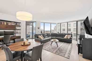Introducing an exquisite home featuring unique floor-to-ceiling glass windows, offering stunning protected panoramic East/SouthEast views of the Epic Manhattan Skyline and Hudson River! Enjoy a peaceful morning sunrise or sunset golden hour on your spacious balcony overlooking the NYC Skyline! This stunning residence boasts a high-end kitchen equipped with custom Italian Pedini cabinetry, generous Aspen quartz stone countertops with a waterfall edge, and a Bosch appliance package, including a Thermador built-in refrigerator, ideal for cooking enthusiasts. Pamper yourself in two luxurious bathrooms with Carrara marble floors and walls, custom Italian Pedini vanities topped with quartz countertops, and Moen faucets complemented by luxurious rain shower heads. The spacious bedrooms offer ample closet space, and the entire home is adorned with beautiful light oak flooring throughout. Modern Restoration Hardware lighting fixtures and the convenience of in-unit laundry complete the package. Residents enjoy exceptional 40,000 SF of resort-style amenities, including a 24/7 concierge, multiple resident lounges, an infinity pool, a 6,000 sq. ft. fitness center with a yoga studio, aerobic studio, and weight room, two saunas, a thoughtfully designed play area for children, two landscaped community decks with fire pits and BBQs all overlooking The Greatest City in The World. One Parking Space included. Available Early Sept.