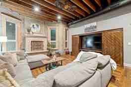 This home is a masterpiece of design, featuring a spacious living area with a chef's kitchen that's fully equipped, a family room with a balcony and a large HD TV, and a galley-style laundry area on the upper level. The fully finished lower level includes a family/rec room, wet bar, and full bath. Enjoy the master suite with a 2-person jetted tub, bidet, and a California Closet.