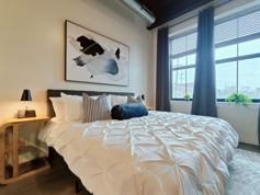 Inside, you'll find a modern, fully furnished apartment with a stylish urban design, created to make you feel right at home. The apartment features a king-size bed with a memory foam mattress and a convertible sofa queen bed, accommodating up to three guests. Enjoy the fully equipped kitchen with a Keurig coffee maker, refrigerator, freezer, stove, oven, and microwave. The apartment also includes central A/C and heating, a dedicated workspace, and fast Wi-Fi with a 4K Roku TV. Fresh linens, towels, toiletries, and an in-unit washer and dryer are provided for your convenience.