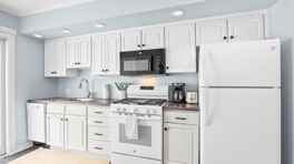 Welcome to your next shore getaway! This home is carefully curated and professionally managed and cleaned, designed to ensure a memorable stay, creating a perfect blend of comfort, functionality, and relaxation. The primary bedroom features a king-size bed, the guest bedroom includes a queen bed, and the bunk room is great for kids or extra guests with full-over-full bunk beds. All sleeping areas are on the upper level of the home. The open-concept living area offers plush seating, a large TV, and plenty of natural light. The fully equipped kitchen comes with modern appliances, all cookware and dishes, a toaster, a blender, a Keurig coffee maker, and ample space for cooking. Enjoy meals together in the spacious dining area. Outdoor spaces include a private front porch to relax and enjoy the summer breeze and a ground-level patio with seating and storage for beach gear.