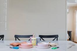 Baby essentials such as a high chair, pack-n-play crib, and kid-friendly utensils and dishes are available upon request. The private outdoor space is perfect for pets, and the home offers two private parking spots on the driveway.