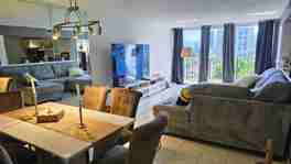 Stunning, spacious, and sunlit unit with generous walk-in closet & large den. Open-concept living/dining area seamlessly connects to sleek kitchen featuring SS appliances. In-unit washer and dryer add to the convenience. Step out onto the balcony to relish captivating sunset vistas. This impeccably maintained building boasts 24/7 security, 2 recently renovated fitness centers, private storage, laundry facilities, secure bike room, game/billiard room, private entertainment space, and a library. The complex offers a clubhouse, heated pool with updated BBQ & picnic area, 2 upgraded tennis courts, sauna, & assigned parking with ample guest spaces. Conveniently close to beaches, dining options, casinos, shopping, FLL, etc.