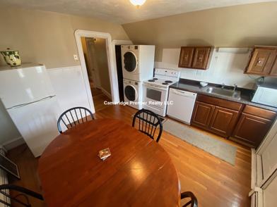 Lovely top floor furnished one bed one bath apartment in a three family house close to Davis Square. Large bedroom with huge closet, spacious living room with another closet, eat-in-kitchen with dishwasher, electric range, fridge and in-unit washer/dryer. Hardwood floors throughout, gas heating paid by the tenant. This unit is fully furnished. One tandem parking included in the rent. Available NOW !!