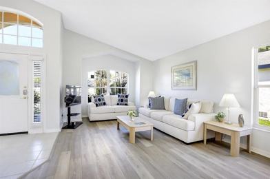 Welcome to this remodeled and refurbished villa, centrally located just off US Hwy 192 in Indian Ridge, one of the closest communities to the Disney Parks and attractions. This beautiful 3-bedroom, 2-bathroom villa is a gem, offering an immaculate and inviting space to experience Florida living at its finest. The south-facing pool is a private oasis, fully enclosed and screened, with a larger-than-average deck complete with sun loungers and chairs, perfect for relaxing or swimming with the family. Enjoy a meal outside in the spacious outdoor dining area.