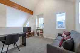 The Rocking Chair Retreat is thoughtfully designed with multiple spaces for comfort and entertainment. The basement features a private king bedroom with an en-suite bathroom, a cozy lounge with arcade-style games, a TV for movie nights, and laundry facilities. On the main floor, an open-concept living area with large east-facing windows showcases breathtaking views of the Teton Range, a fully stocked kitchen, and a queen bedroom with a shared bathroom. The loft offers a fun kid-friendly space with a full-over-full bunk bed, a TV, and a hangout area open to the main floor below. Whether you're cozying up in front of the TV, playing games in the basement, or soaking in the views from the living room, there’s a space for everyone to enjoy at the Rocking Chair Retreat.