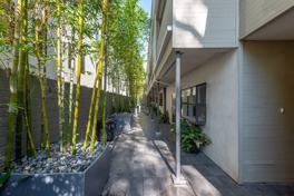 Located in a coveted Brentwood neighborhood, just minutes from the upscale shops, restaurants, and markets of San Vicente Boulevard and Brentwood Village, this light-filled 2-bedroom, 2.5-bathroom townhouse offers the perfect blend of privacy and city living. Positioned as a front corner unit with only one shared wall, the home welcomes you with an expansive private patio overlooking a tranquil wooded hillside ideal for outdoor dining or relaxing in nature. Inside, soaring vaulted ceilings and a large skylight fill the spacious living room with natural light. Enjoy cozy evenings by the wood-burning fireplace, new wood floors downstairs, and a formal dining area that flows seamlessly into a generous kitchen perfect for entertaining. Upstairs, the primary suite offers a walk-in closet and tree-lined views. The second well sized bedroom also offers an en-suite bathroom. Additional highlights include a separate laundry room, two-car gated parking, and central air and heat.