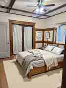 Original features (wood floors, stained glass) paired with modern upgrades (kitchen + bathroom)