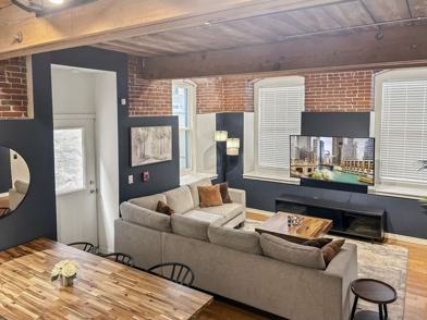 Nestled in the vibrant and eclectic Northern Liberties neighborhood of Philadelphia, this charming 2-bedroom residence offers a unique blend of historic charm and modern amenities. The apartment features a spacious and inviting living room, tastefully furnished with a comfortable sofa bed, perfect for relaxing after a day of sightseeing or work. The first bedroom boasts a cozy queen bed, while the second bedroom offers a bunk bed setup, ideal for families or friends traveling together.