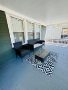 The kitchen is fully stocked with a gas stove/oven, fridge, and portable dishwasher. All cookware is provided, and specialty cookware is available upon request. There are two queen bedrooms and a full bathroom with a shower/tub combo. Both bedrooms have ceiling fans, overhead lighting, luggage stands, closets with hanging dressers and hangers, and blackout curtains. One bedroom has a Smart TV set-up. The house is fully stocked with bedding, towels, and basic cleaning supplies. Central air is provided. A washer and dryer are located in the basement, accessible by stairs.