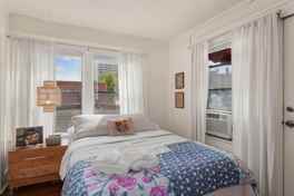 The living room invites you to experience the timeless charm that defines Fayetteville's essence. This remarkable stone apartment building, a piece of the city's history since 1925, welcomes you with open arms. You'll discover a space that seamlessly blends history with modern comfort. Recent updates include a fully remodeled bathroom, gleaming new kitchen appliances, and an outdoor balcony offering sweeping views of the vibrant downtown scene. When the time comes to unwind, retreat to one of the two inviting bedrooms, one with a king-size bed and the second with a queen-size bed.