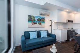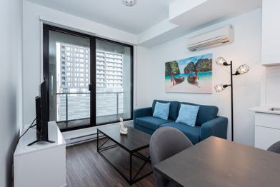 This new condo is very well located near the Bell Centre, just steps away from the Golden Square Mile’s attractions. It features 2 bedrooms with 1 queen bed, 1 double bed, and 1 bathroom.