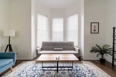 Recently remodeled and tastefully furnished in true Portland fashion, the living room is cozy and relaxed, with new windows streaming plenty of natural light and a comfy couch. Overlooking Portland's newest bridge crossing, Tilikum, those rainy days are perfect for cuddling up and watching movies on the 50" LED flat-screen TV. While there is no cable, you'll have access to Netflix and blazing-fast Wi-Fi for streaming. The fully equipped kitchen features new appliances and a big farmhouse-style table in the spacious dining room to easily host your crew.