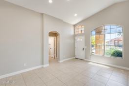 Open-Concept Living Area – High vaulted ceilings and fresh new paint throughout create a bright, modern feel. Large neutral tile flooring ties the home together for a clean, elegant look.