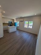 Hugh entertainers kitchen with quartz countertops and large island. Brand new stainless steel appliances including dishwasher and laundry in unit.