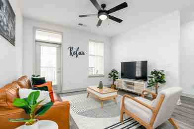 The apartment is remote work-friendly, featuring an office desk, chair, and fast Wi-Fi for all your work-from-home needs.