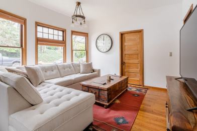 Bright, modern, and family-friendly, this upper-level home features three queen bedrooms, a full kitchen, washer and dryer, fast Wi-Fi, smart TV, and central air. Located near PSU and Providence Park in walkable Goose Hollow, you’re just minutes from downtown. Includes a private front deck and off-street parking for two small cars. The unit is accessed via an exterior staircase.