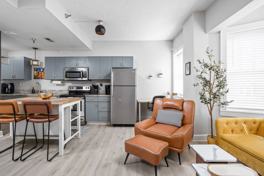 This thoughtfully designed studio condo is an urban retreat for solo travelers, couples, or business visitors. It features a plush full-size bed, a fully equipped kitchen with stainless steel appliances, and a dedicated dining/workspace. Enjoy the convenience of a coffee bar with complimentary coffee, oatmeal, popcorn, and breakfast bars. The full bathroom is equipped with modern fixtures and essentials, ensuring a comfortable stay.