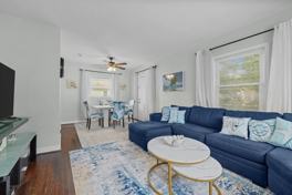 Enter the home and feel an immediate sense of calm as cool air and natural light welcome you into a spacious, peaceful living area. Whether you're curling up with a book or enjoying a rainy day indoors, there's plenty of room to stretch out and relax. Gather around the dining table for hearty meals and laughter – it's the perfect spot to connect and share stories. The well-appointed kitchen is fully stocked and ready for longer stays, making meal prep a breeze. Just off the kitchen, you’ll find a convenient tucked-away half bath and a full-sized washer and dryer to make extended stays even more comfortable. Head upstairs to find two large, cozy queen bedrooms and a beautifully remodeled full-size bathroom featuring a shower/tub combo – ideal for winding down after a day of exploring or working remotely. Out back, enjoy the peaceful backyard space – perfect for sipping morning coffee or soaking up some sunshine.