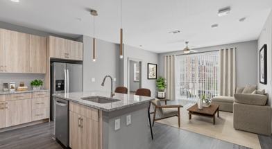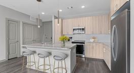 Each apartment at is crafted with exquisite attention to detail. Enjoy modern features like quartz countertops, stainless steel appliances, and a full-size washer and dryer in every home. Select a kitchen island, adding even more functionality to your space.
