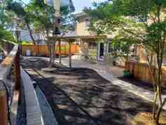 Front Yard new landscaping including steps, flagstone walkway, automatic drip irrigation, automatic, low-voltage electrical illumination