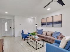 Welcome to your home away from home! This cozy space is designed with aesthetically pleasing features to create a picturesque escape. The open-concept layout and backyard firepit make it ideal for good times with great people. With four bedrooms and two bathrooms, it comfortably hosts large groups of up to 12 guests. The fully equipped kitchen, complete with essential appliances and a unique geometric backsplash, opens into the spacious living and dining area, ensuring you're never far from the socializing.