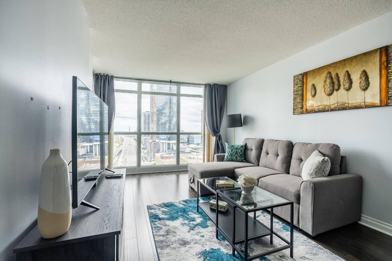 Immerse yourself in Toronto’s bustling energy! This apartment provides a cozy space to relax and feel at home after a day filled with new experiences. Enjoy the view of downtown Toronto from the balcony on the 22nd floor.