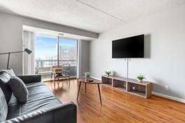 This bright and modern apartment is thoughtfully designed to be your comfortable and stylish home away from home. The apartment features a fully equipped kitchen and a spacious living area with a sofa bed for extra sleeping space. Enjoy the convenience of in-unit laundry with a washer and dryer.