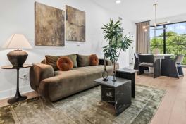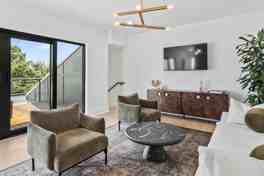 This penthouse offers a spacious and open-concept living area, perfect for both relaxation and socializing. The modern kitchen is fully equipped with top-of-the-line appliances, sleek countertops, and all the essentials needed to prepare meals, making it a chef's dream. The stylish dining area seats six, providing the perfect spot for meals or a game night with loved ones. The living room is designed for comfort, with plush seating and large windows that let in plenty of natural light, highlighting the beautiful cityscape. Whether you're enjoying a quiet evening in or entertaining guests, this space provides the perfect setting for any occasion. The loft area adds a unique touch, offering additional seating and an extra sleeping space without sacrificing privacy or style.